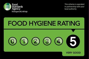 We have a Food Hygiene Rating of 5.