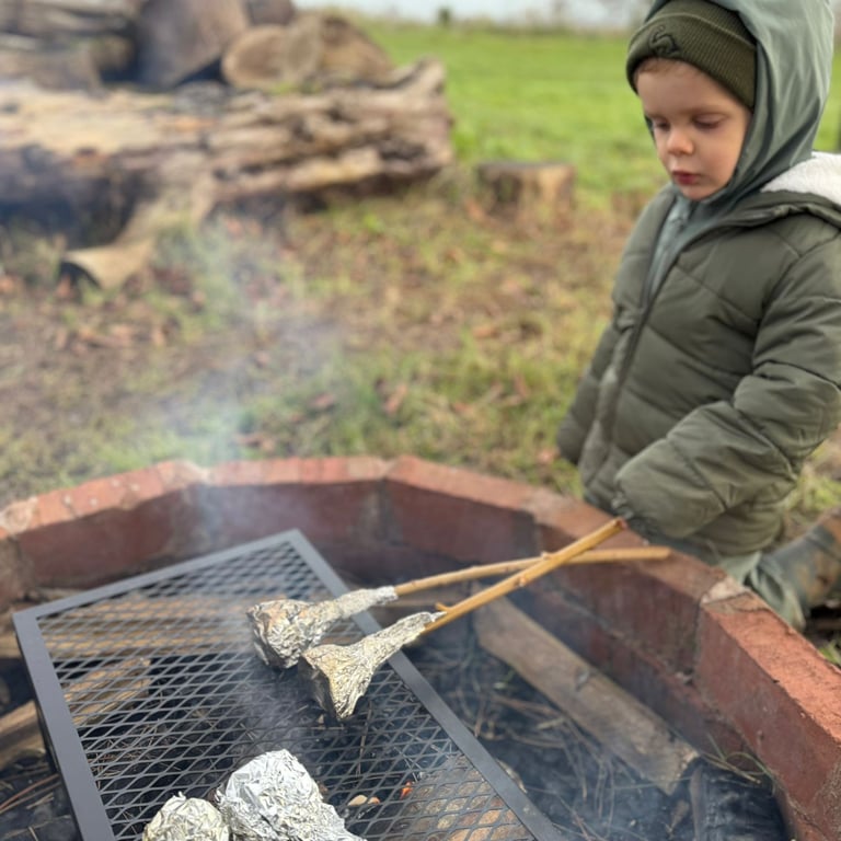 Join our wonderful Becky for camp fire and Forest School sessions, alongside time in the play space at Mucking About.